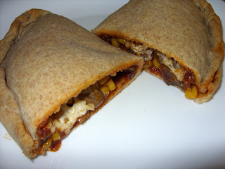 A megkelt pizzatésztát 6 részre osztottam. Mindegyiket kör alakúra nyújtottam. A felét megkentem paradicsomszósszal, megpakoltam a gombás-húsos keverékkel, és megszórtam sajttal. A tészta másik felét ráhajtottam, a szélét összenyomkodtam, és kicsit megsodortam.